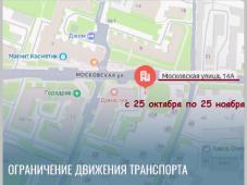 С 25 октября по 25 ноября 2025 года на проезжей части участка автомобильной дороги Московской ул., в районе строения № 14а по Московской улице, временно ограничат движение транспортных средств связи с проведением работ по обустройству парковки у нового строящегося здания.