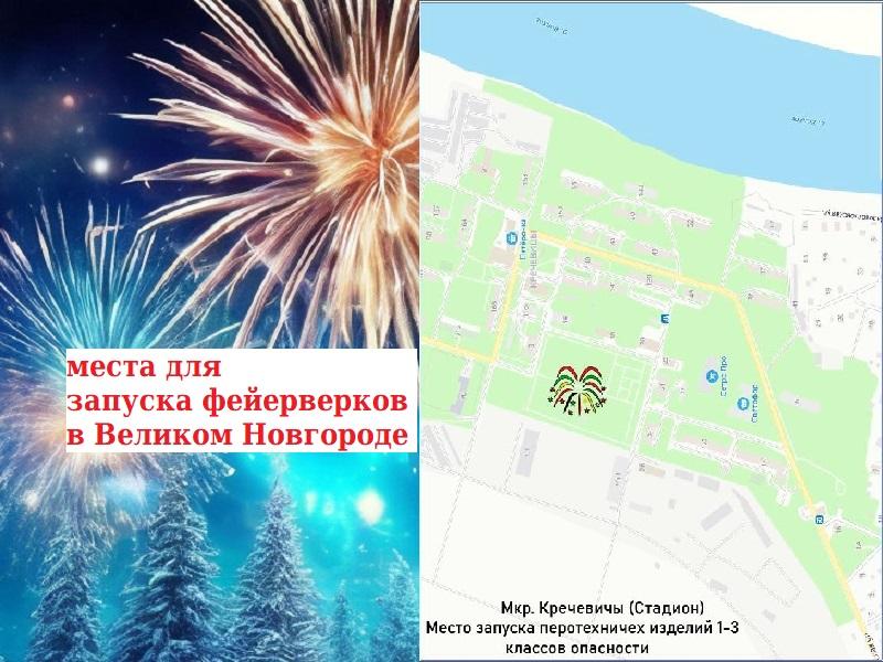 - в микрорайоне Кречевицы - стадион (координаты: 58.615214, 31.398366);