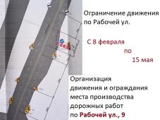 Вниманию автомобилистов: с 8 февраля по 15 мая на участке Рабочей ул. планируется провести дорожные работы